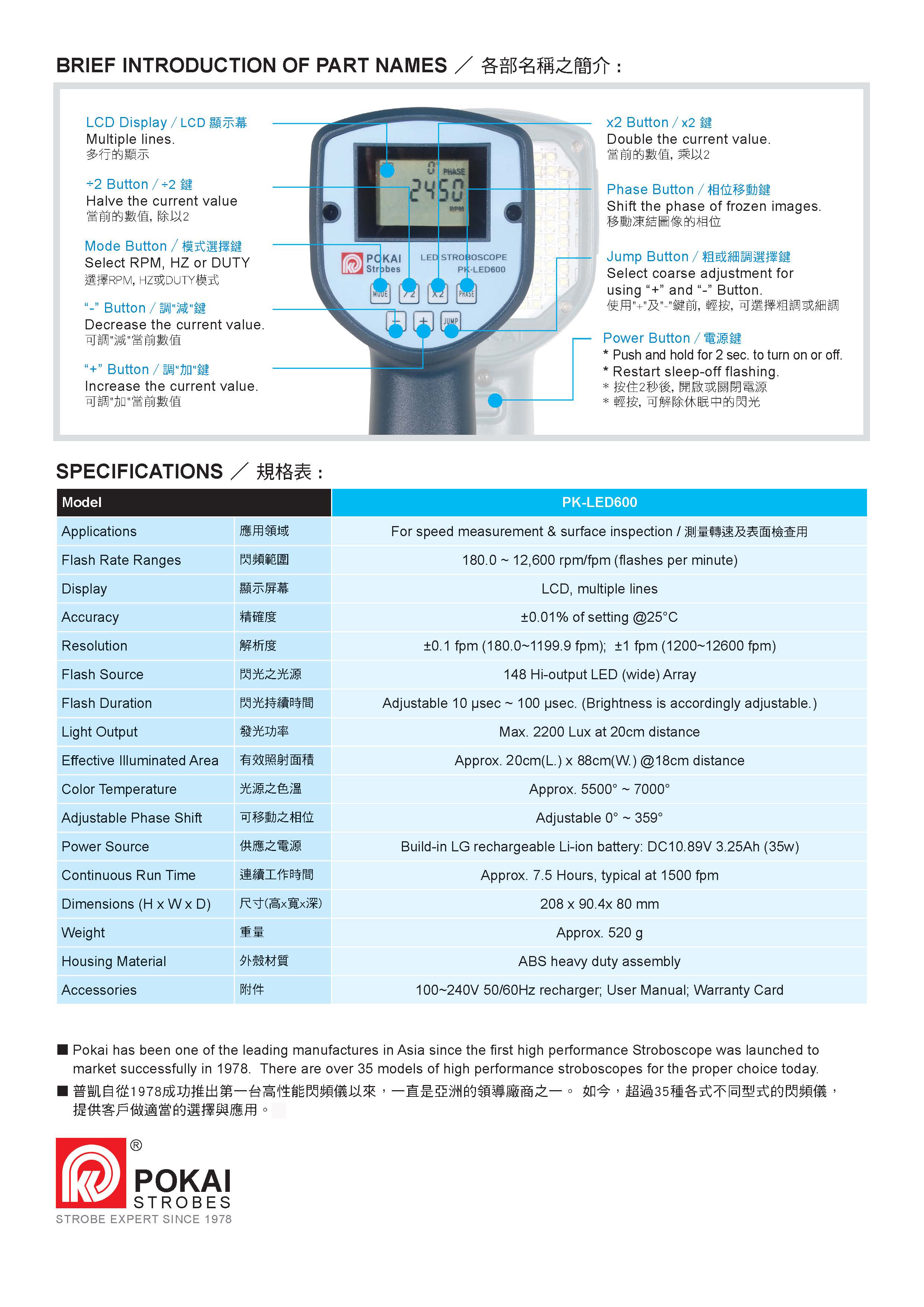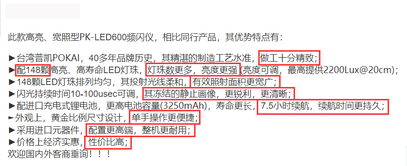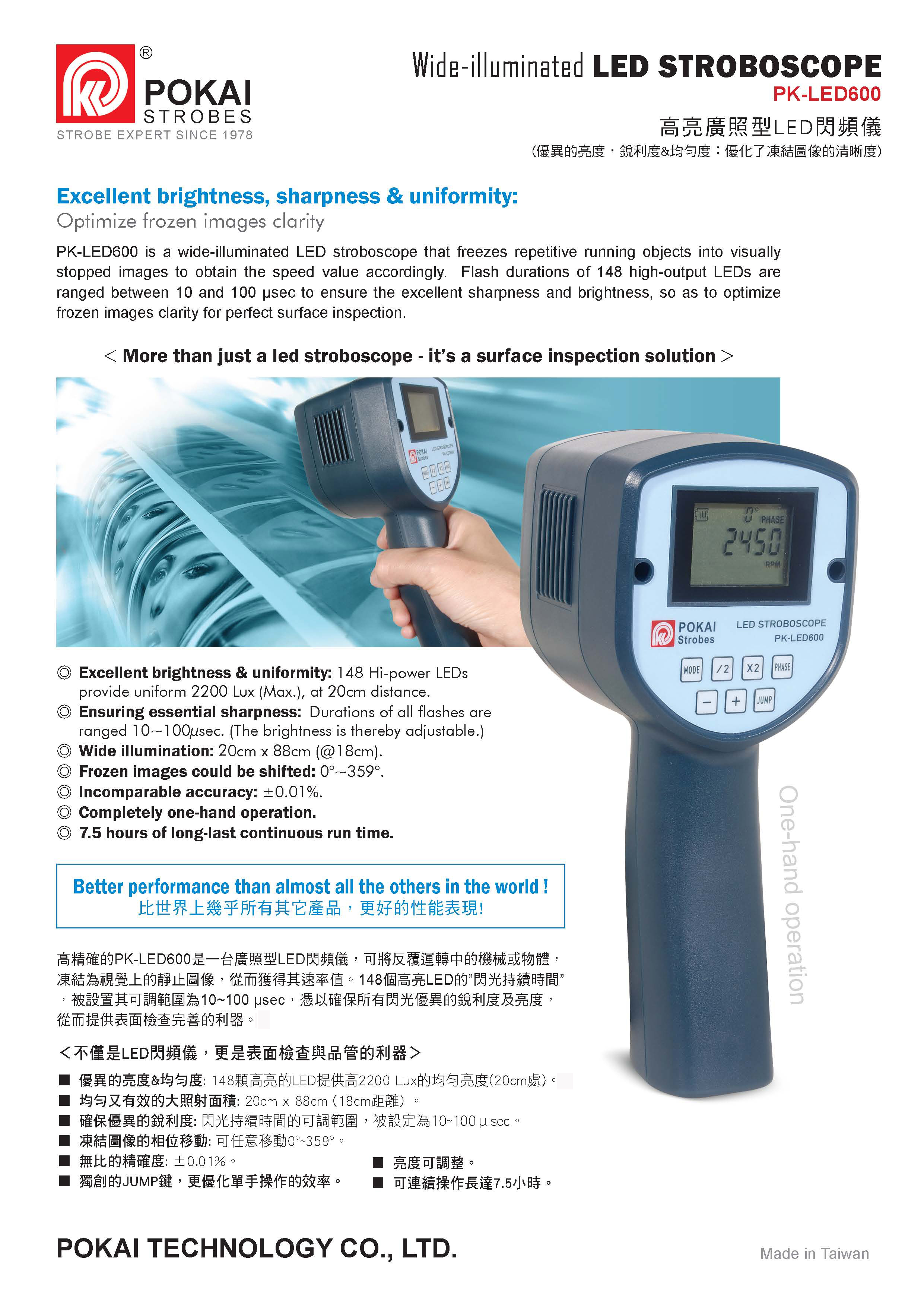 ![]() 标题:超亮宽照手握LED频闪仪型号:PK-LED600 描述:频率180-12600RPM,配148颗LED珠,亮度更强,配置高端,照射更宽广,7.5小时续航,很耐用! |