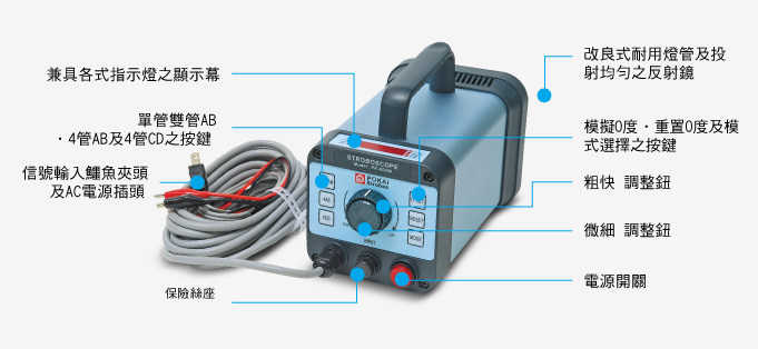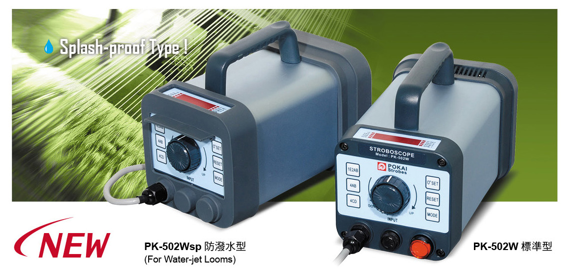 ◆ 新推出防水型PK-502Wsp,乃专为各类喷水式织布机而设计之高智慧闪频仪。